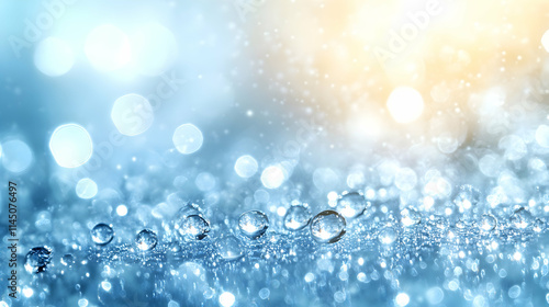 © abid, Obraz premium Sparkling water droplets on a blurred background.