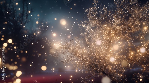 © Big9869, Obraz premium Sparkling Winter Tree Night Scene Glowing Lights