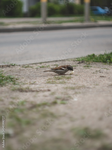 © pavl.p, Fototapeta premium sparrow eat a small piece of bread