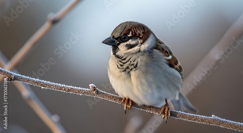 © sarah, Naklejka premium Sparrow Perched on Branch.