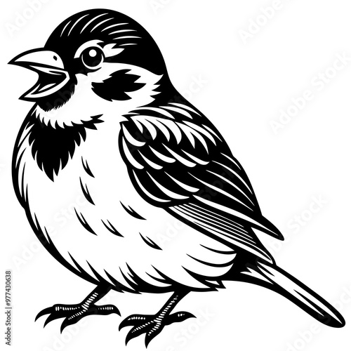 © Blanche, Obraz premium Sparrow perched with a cheerful expression and fluffy feathers vector