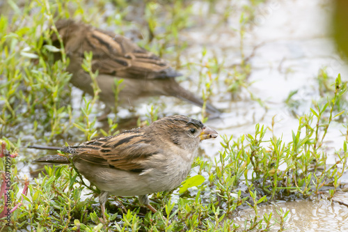 © DRBURHAN, Fototapeta premium Sparrow wet and feeding in the rain