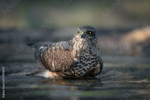 Fototapeta premium Sparrowhawk taking a bath on a pond