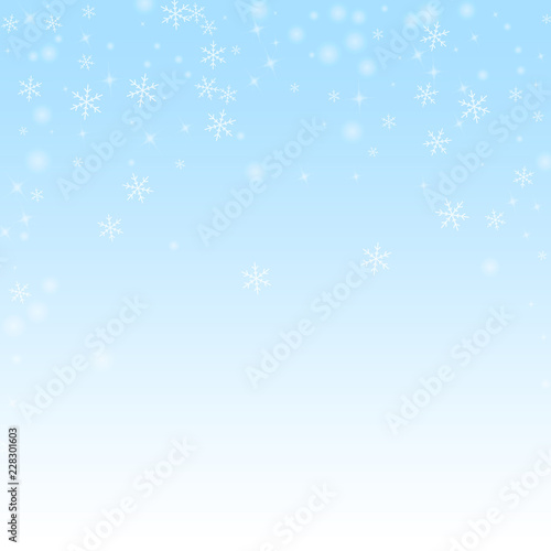 Fototapeta premium Sparse glowing snow Christmas background. Subtle f