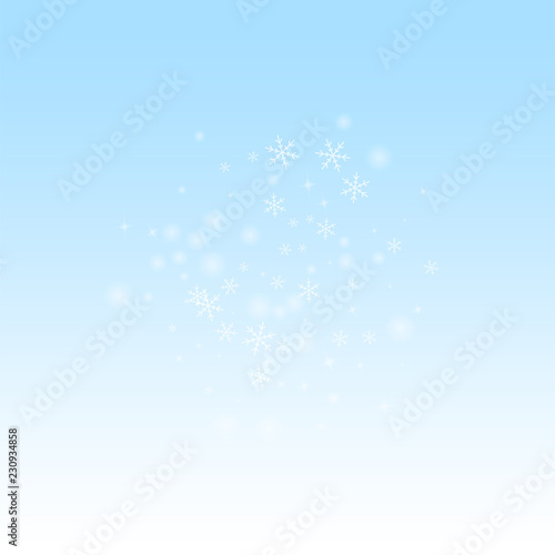 Fototapeta premium Sparse glowing snow Christmas background. Subtle f