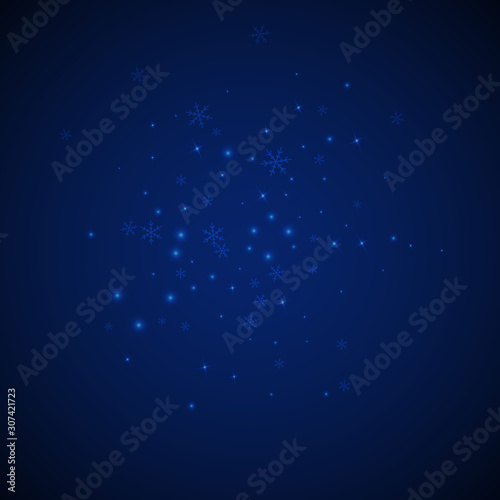 Fototapeta premium Sparse glowing snow Christmas background. Subtle f