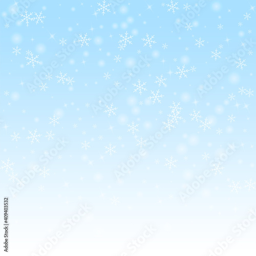 Fototapeta premium Sparse glowing snow Christmas background. Subtle f