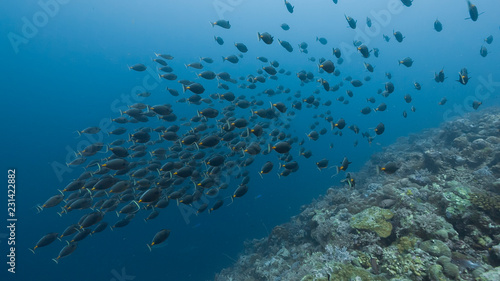 Fototapeta premium Spawning aggregation of Orange-spine Surgeonfish