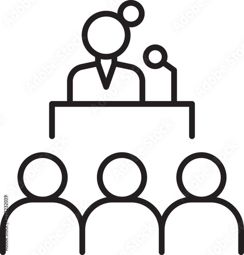 Fototapeta premium Speaker at podium with audience members line icon