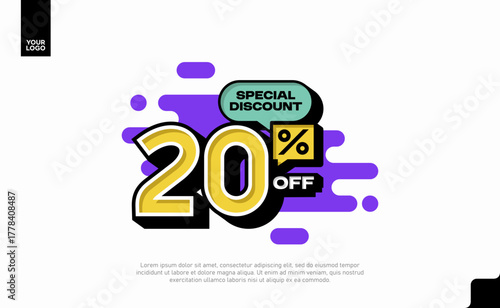 © Artsetya, Naklejka premium Special Discount 20 Percent Off Banner Design in Modern Yellow and Purple Style