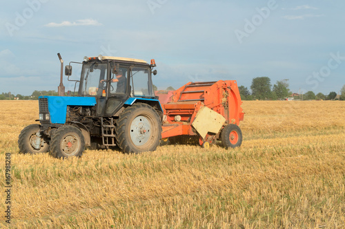 Fototapeta premium Special machines for harvesting form round bales of hay.