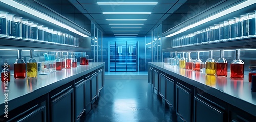 Fototapeta premium Specialists conduct research on patient samples in a realistically depicted medical lab.