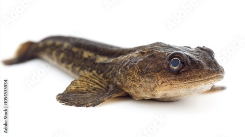 © Vitalii But, Naklejka premium specimen of Eelpout belonging to the Zoarcidae family is presented against a white background highlighting its distinct morphology and coloration.