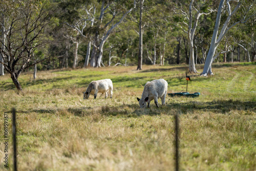© William, Fototapeta premium speckle park cows and bull on a farm eating grass and living free range