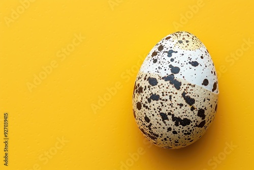 © Kantiztiae, Obraz premium Speckled Egg on Bright Yellow Background