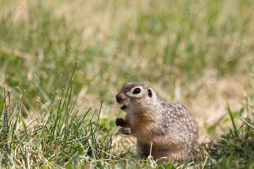 © Shchipkova Elena, Fototapeta premium Speckled ground squirrel animal stands on its hind legs