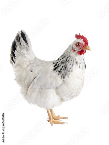 © yevgeniy11, Fototapeta premium Speckled hen. Isolated on white background.