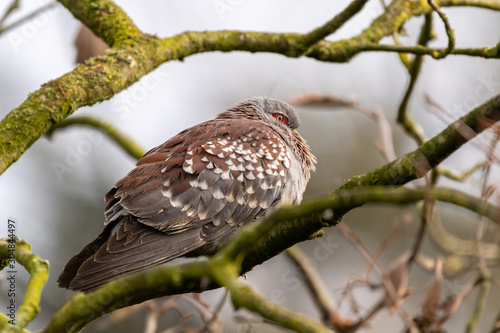 © Ian, Fototapeta premium Speckled Rock Pigeon Perched in a Tree
