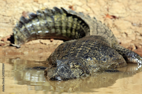 Naklejka premium Spectacled Caiman the Water by the River Bank. Rio Claro, Pantanal, Brazil