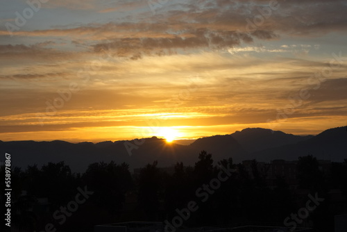 Fototapeta premium Spectacular and colorful sunrise on the horizon in Murcia