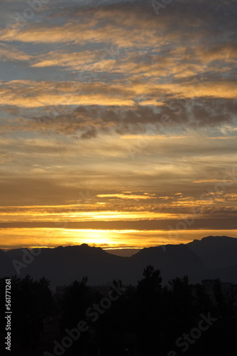 Fototapeta premium Spectacular and colorful sunrise on the horizon in Murcia