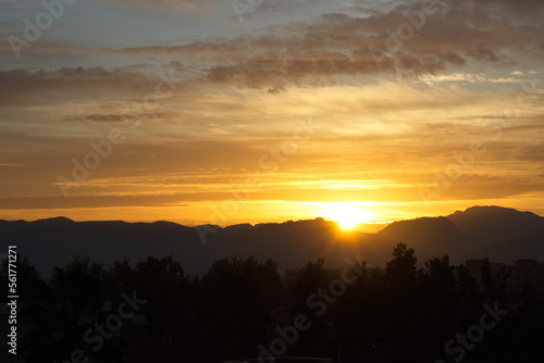 Fototapeta premium Spectacular and colorful sunrise on the horizon in Murcia
