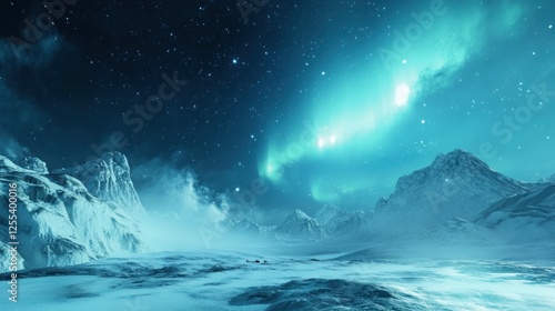 Naklejka premium Spectacular Aurora Borealis over Majestic Ice-Capped Mountains at Night