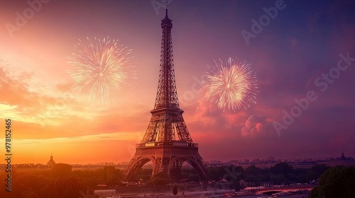 Fototapeta premium Spectacular Bastille Day Fireworks Display Illuminating the Eiffel Tower in...