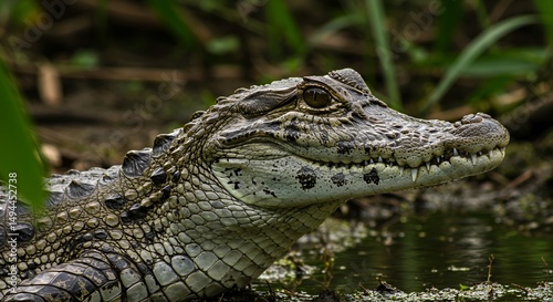Obraz premium Spectacular Close-up of a Juvenile Spectacled Caiman in its Natural Habitat
