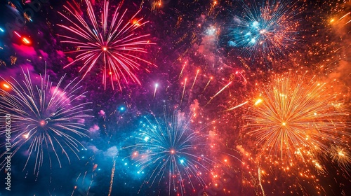 © Agus, Fototapeta premium Spectacular Colorful Fireworks Display Illuminating the Night Sky