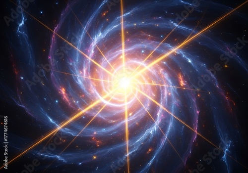 Obraz premium Spectacular cosmic spiral with radiant light emanating from a central core in...