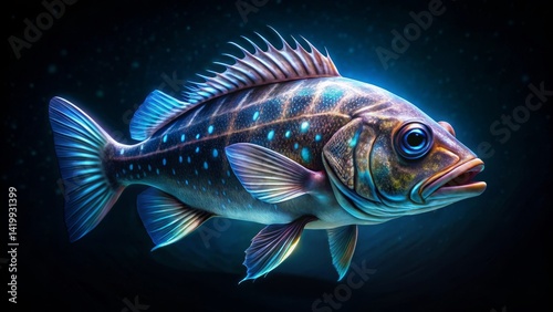 Fototapeta premium Spectacular Deep-Sea Fish with Iridescent Fins and Scales, a Vivid Underwater...