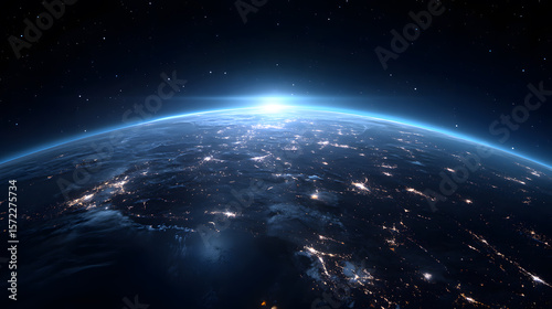 Obraz premium Spectacular Earth From Space: A mesmerizing view of planet Earth from space, with the radiant sun's embrace illuminating the horizon. A visual celebration of our shared home.