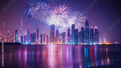 Fototapeta premium spectacular fireworks display illuminating city skyline at night abstract photo
