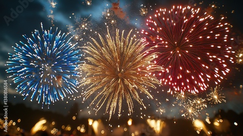 © novitasary, Fototapeta premium Spectacular Fireworks Display Illuminating the Night Sky