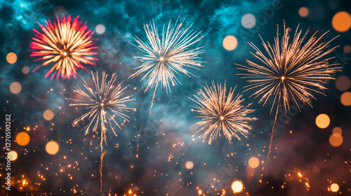 Fototapeta premium Spectacular fireworks display illuminating the night sky with brilliant colors