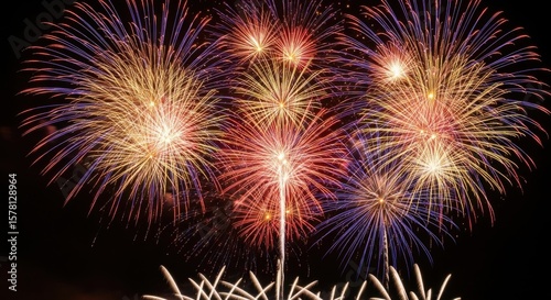 Fototapeta premium Spectacular Night Sky Bursting with Vibrant Fireworks Displays Creating a...