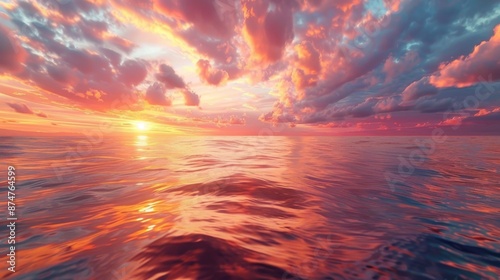 Obraz premium Spectacular Ocean Sunset. Vibrant Clouds and Golden Light Reflecting on Water