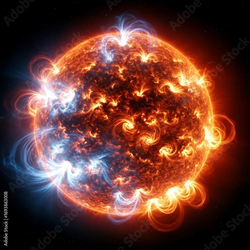 Obraz premium Spectacular Solar Flare Eruption and Plasma Corona Display in Deep Space Cosmos