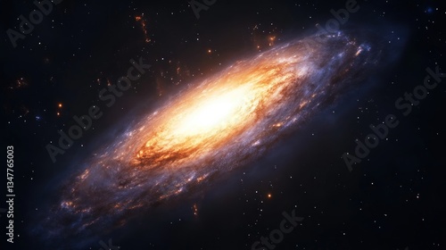 Fototapeta premium Spectacular spiral galaxy with luminous core in the vast universe