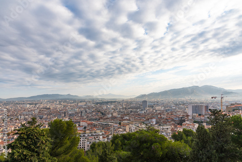 © Vladyslav, Fototapeta premium Spectacular sunrise in the city with cloudy sky on the background