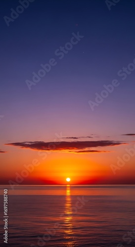 © Soleh, Fototapeta premium Spectacular sunrise over a calm sea with vibrant hues and clouds
