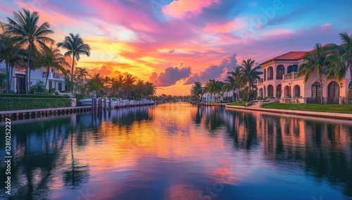 Fototapeta premium Spectacular Sunset over Luxurious Waterfront Homes