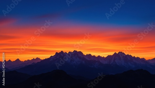 Fototapeta premium Spectacular sunset over mountain range with vibrant sky colors