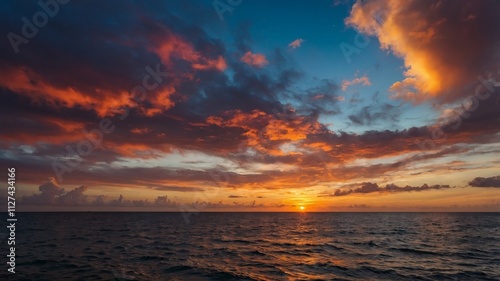 Naklejka premium spectacular sunset over the sea, with red, yellow and orange clouds