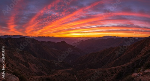 © Firman Dasmir, Fototapeta premium Spectacular sunset paints Mandeville Canyon with fiery hues and dramatic shadows