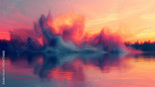 Fototapeta premium Spectacular Sunset Reflections Over Calm Waters in Vibrant Color Palette