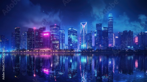 © Shrlakbar, Fototapeta premium Spectacular urban panorama showcasing the modern architecture and vibrant lights