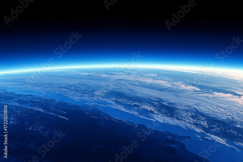 Fototapeta premium Spectacular View of Earth from Space with Visible Atmospheric Layers and Horizon