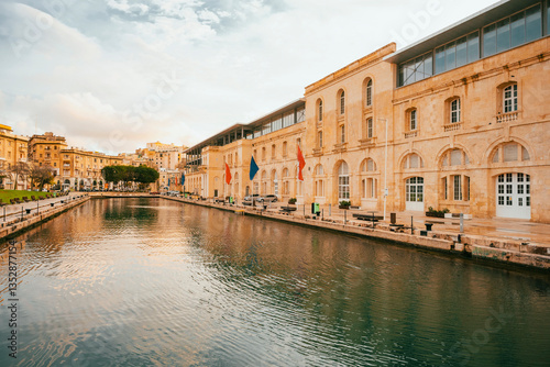 Naklejka premium Spectacular view of the moored sailing yachts in seaport Vittoriosa and St....
